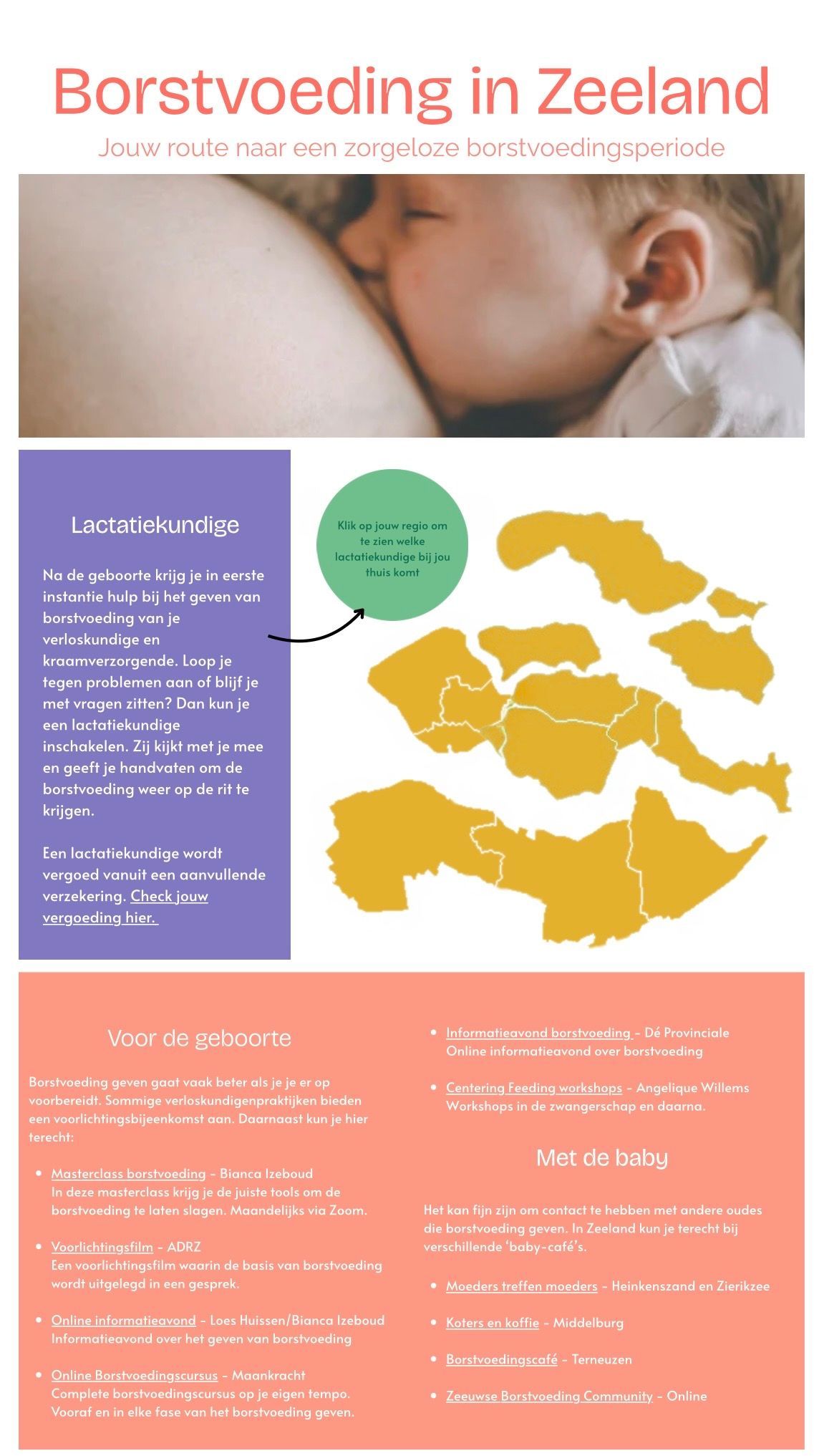 Wil je jouw baby straks borstvoeding geven? Of geef je borstvoeding en loop je tegen uitdagingen aan? Sla deze flyer dan op. Hierop zie je direct welke mogelijkheden er zijn om je voor te bereiden, en welke lactatiekundigen in jouw woonplaats werkzaam zijn.